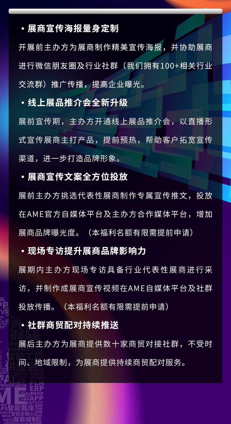 · 100+媒體全方位營(yíng)銷:聯(lián)合百家頭部媒體、各官方自媒體平臺(tái)進(jìn)行全方位營(yíng)銷,為服裝智能制造企業(yè)進(jìn)行全方位宣傳推廣!