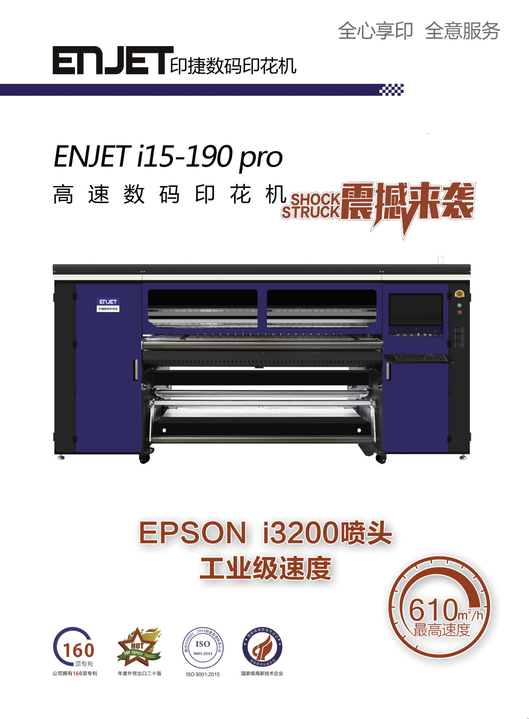 搭載15個(gè)EPSON I3200噴頭 1pass速度可達(dá)610平方米/小時(shí)。千兆網(wǎng)絡(luò)數(shù)據(jù)傳送端口,滿足數(shù)碼印花高清畫面輸出穩(wěn)定性和傳輸速度的要求。