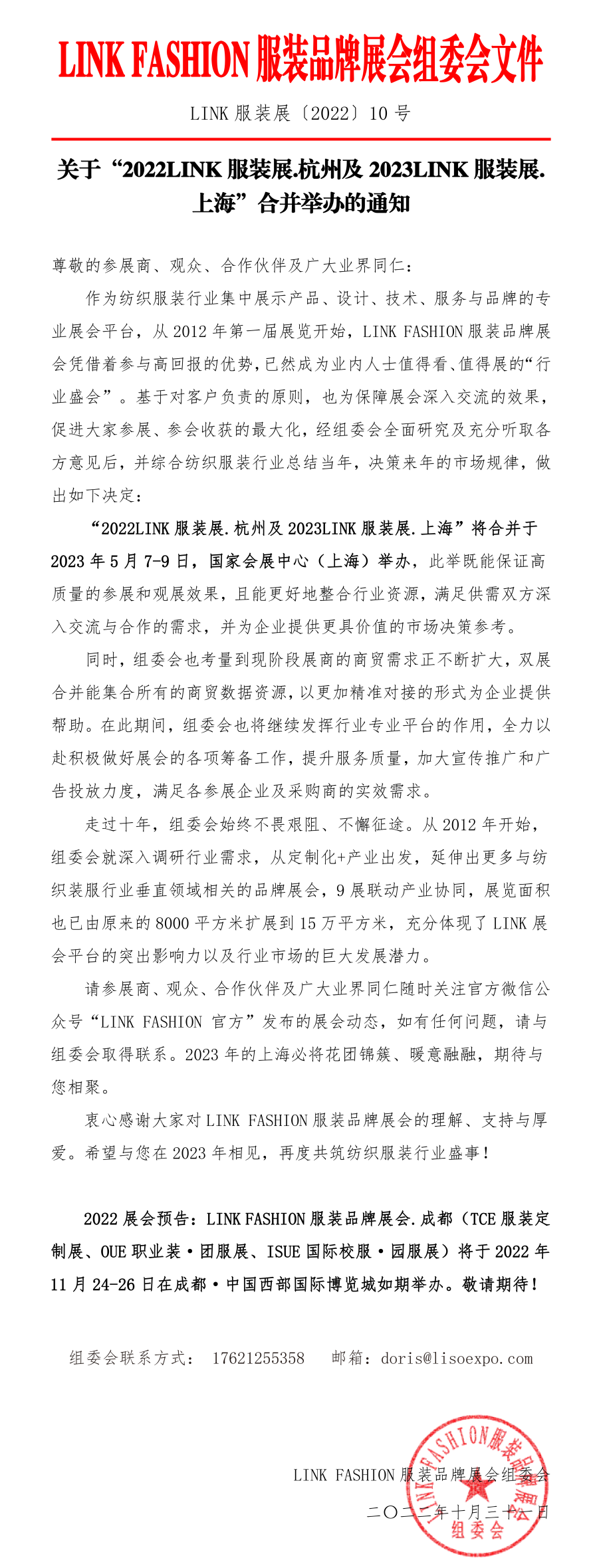 尊敬的參展商、觀眾及合作伙伴: